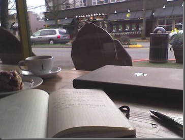 I have been coming to Caffe Ladro in Kirkland lately. Great spot right in downtown Kirkland with a cool table that stretches the length of the large front window. The coffee is pretty good. Shade grown, for those of you who care.
