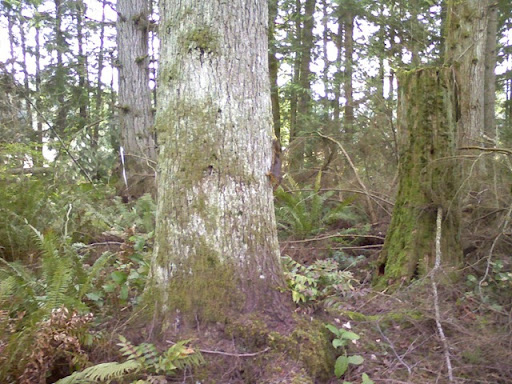 Saturday morning Abby and I went on our little hike down to Starbucks and back through the trails at Redmond Ridge. There was a little squirrel on this tree and when we got close he started chirping at us. I have a short video that is really cruddy, but you can hear the squirrel and Abby chirping at each other. He looked pretty intense and I was formulating squirrel defensive maneuvers in my mind just in case he launched off the side of the tee toward my face. Fortunately though, he remained calm.