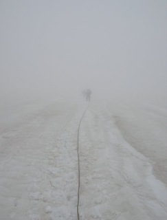 Back on Rainier, as I was approaching the summit I started to feel so exhausted that every step got more and more difficult. Del was pushing on relentlessly and Jeremy was yelling encouragements at me from behind. If not for those two tied to me I would have been inclined to lay down and take a nap. Instead I was tied to two others who wanted to see me on top.